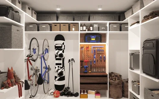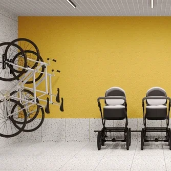 Для хранения сезонных вещей мы предусмотрели кладовые на подземных этажах. Пусть сноуборд, горнолыжный костюм и бабушкины компоты живут в собственном «доме». А оставлять коляски и велосипеды можно в специальных помещениях на первом этаже.