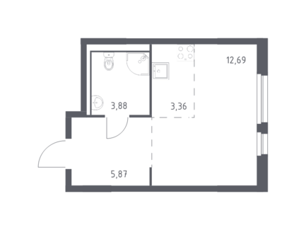 Стены: светлые обои под покраску; санузел — керамическая плитка/керамогранит