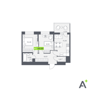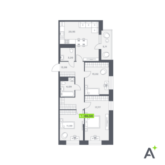 Площадь от 86.54 м2