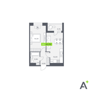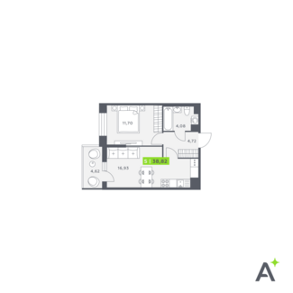 Площадь от 38.63 м2