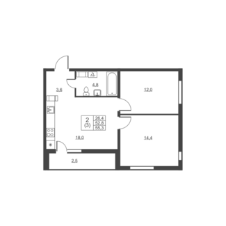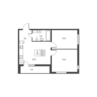 Площадь от 53.30 м2