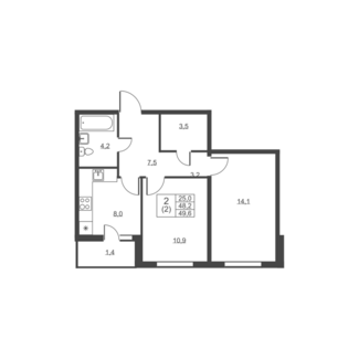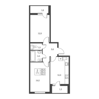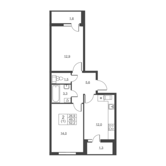 Площадь от 49.60 м2