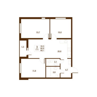 Площадь от 67.80 м2