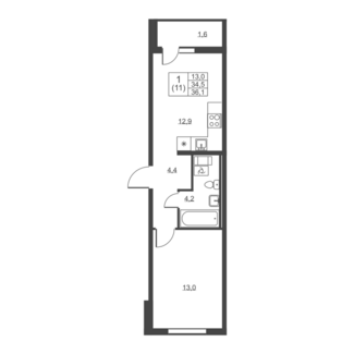 Площадь от 36.70 м2