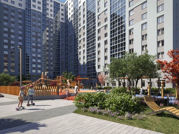 Дворы жилого комплекса «Высота» — продуманное пространство для отдыха и активного времяпрепровождения жителей всех возрастов. Для самых маленьких здесь оборудованы безопасные площадки с мягким резиновым покрытием, песочницами и невысокими горками. Дети постарше оценят игровые комплексы с качелями, каруселями и зонами для активных игр. Уютные зоны отдыха с удобными скамейками, расположенными в тени деревьев, позволят насладиться тишиной и свежим воздухом. Продуманная система велодорожек и тротуаров обеспечивает комфортное и безопасное передвижение по всей территории комплекса. Особое внимание уделено доступности для маломобильных групп населения.