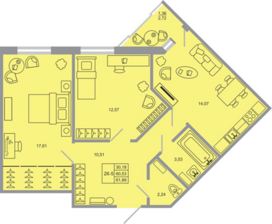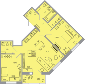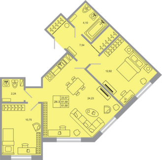 Площадь от 61.68 м2