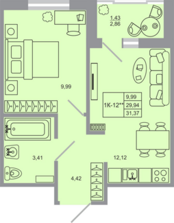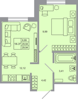 Площадь от 29.94 м2