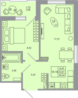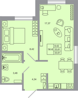 Площадь от 33.61 м2