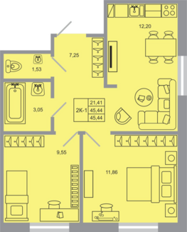 Площадь от 45.44 м2