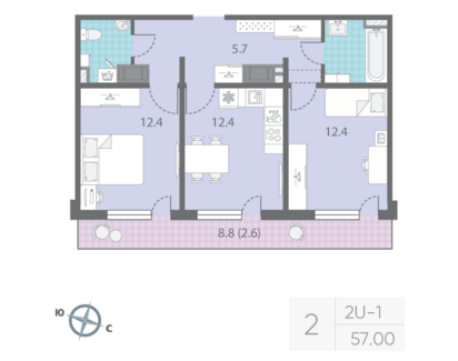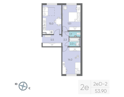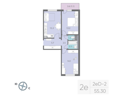 Пол: ламинат 32 класс, белый плинтус ПВХ; санузел — керамогранит; балкон/лоджия — по проекту