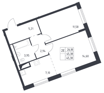 Площадь от 45.38 м2