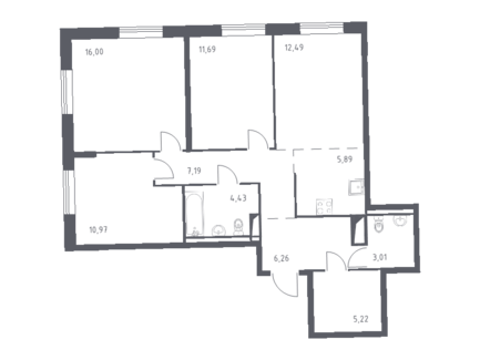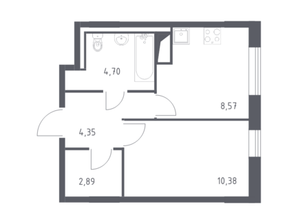 Площадь от 30.89 м2