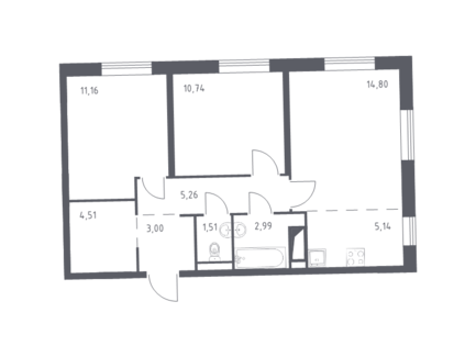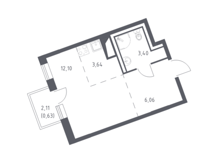 Площадь от 21.74 м2