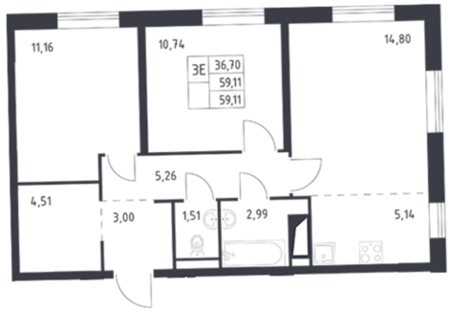 Площадь от 59.11 м2
