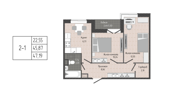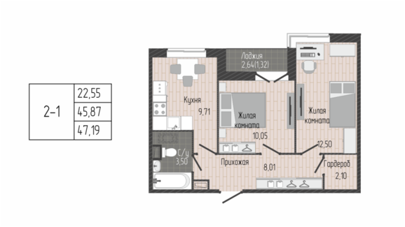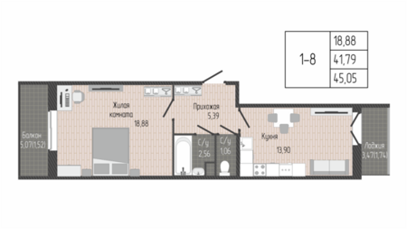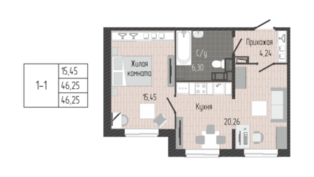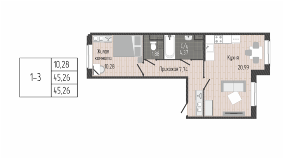 Площадь от 45.40 м2
