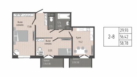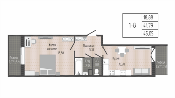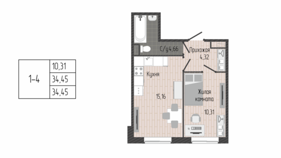 Площадь от 34.40 м2