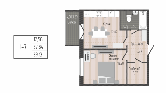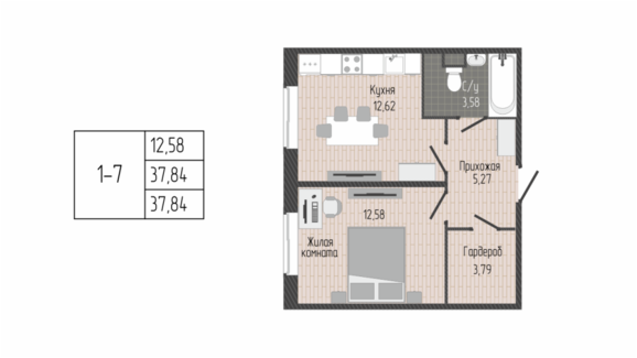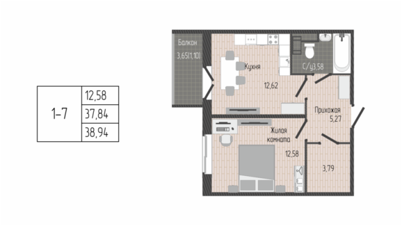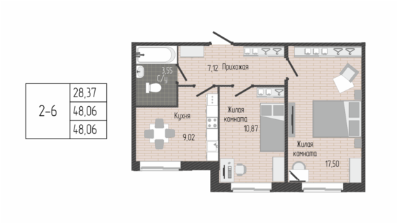 Площадь от 37.60 м2