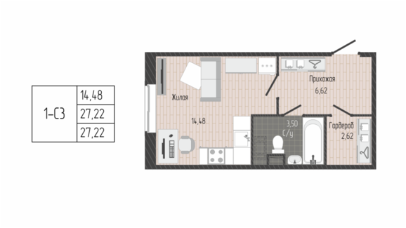 Площадь от 27.00 м2