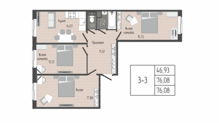 Площадь от 75.50 м2