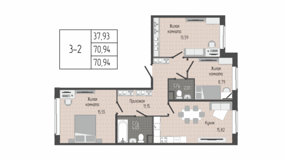 Площадь от 70.60 м2