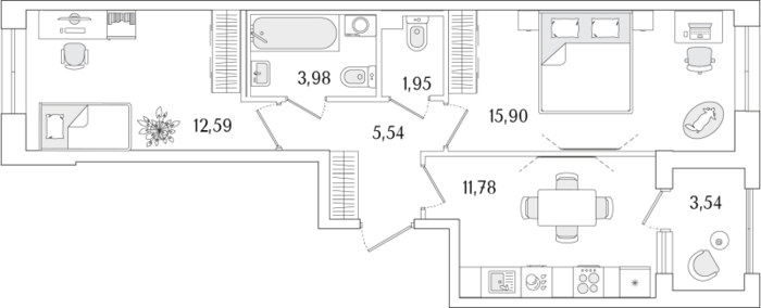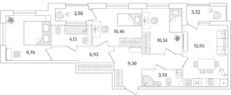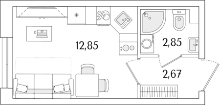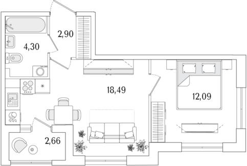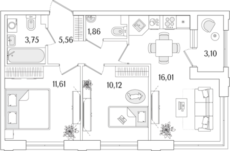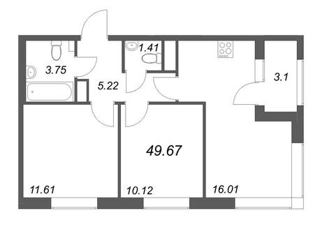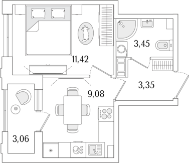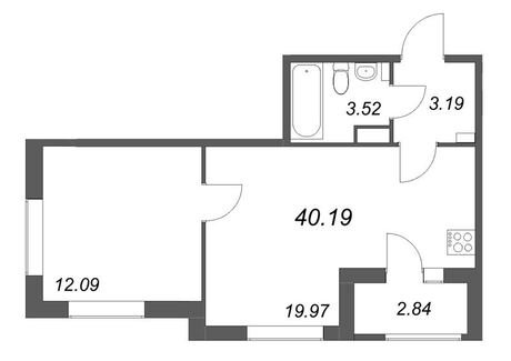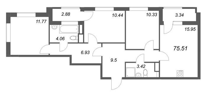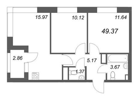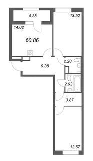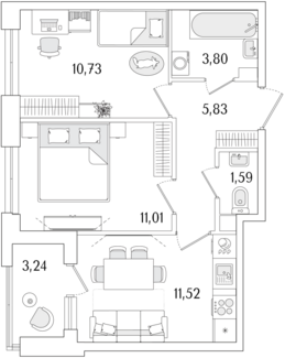 Без отделки Пол: выравнивающая цементно-песчаная стяжка; ванная комната и туалет — гидроизоляция Электрика: электрический щит, точка подключения к домофонной сети с установкой абонентского оборудования Сантехника: радиаторы отопления Прочее: счетчики воды, электросчетчик, остекление балконов и лоджий (в соответствии с проектом фасадного остекления), металлическая входная дверь