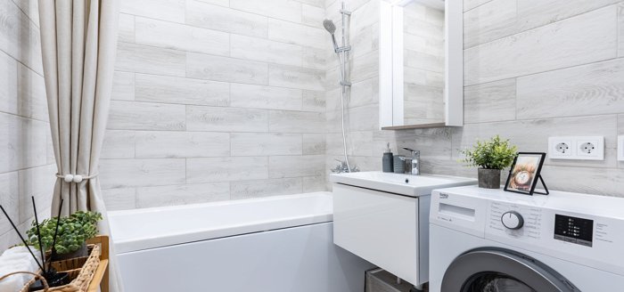 В дополнение включена вся необходимая сантехника и мебель для ванной: шкаф-зеркало, раковина, тумба под умывальник, смеситель, душевая лейка, унитаз, акриловая ванна или душевой уголок в зависимости от типа квартиры.