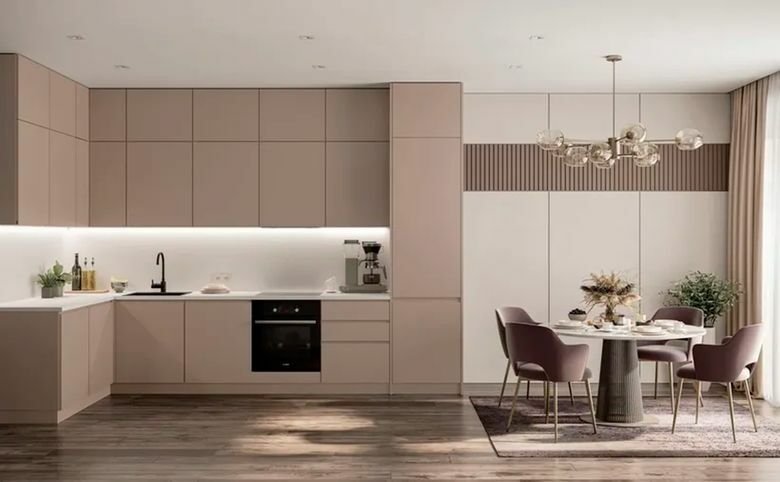 «Кухня «Оптимум Light Beige» ДДУ, ПДКП, КП Пол: ламинат, плинтуса; санузел — керамическая плитка Стены: обои под покраску; санузел — керамическая плитка Потолок: окраска краской белого цвета; санузел — окраска влагостойкой краской белого цвета Электрика: розетки, выключатели Сантехника: акриловая ванна с экраном и смесителем/душевой поддон, раковина с пьедесталом и смесителем, унитаз напольный, полотенцесушитель Прочее: межкомнатные двери, приборы учета ХВС и ГВС Кухня Материал фасада: плита ЛДСП Ручки: накладные Фурнитура: европейская с доводчиками Столешница и стеновая панель: плита ЛДСП Цвет каркаса: белый Цвет фасада: белые матовые — верхние, древесные — нижние Высота кухни: 2 230 мм Сантехника: мойка из нержавеющей стали, смеситель — хромированный Бытовая техника: не комплектуется Аксессуары: не предусмотрены