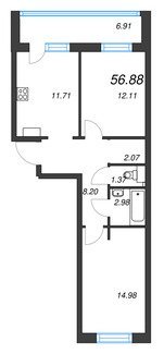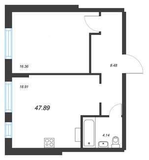 Площадь от 28.60 м2