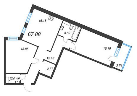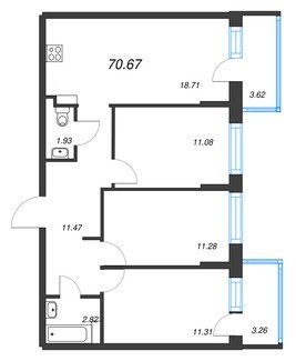 Площадь от 70.20 м2