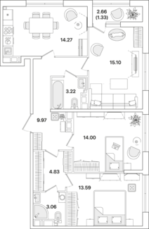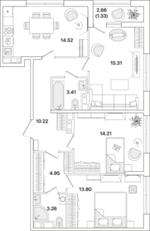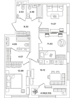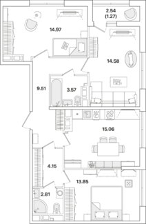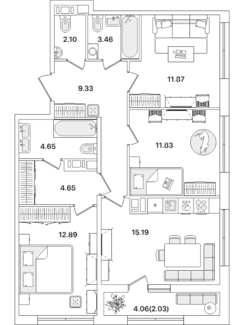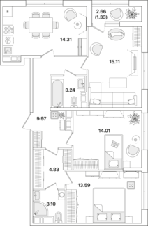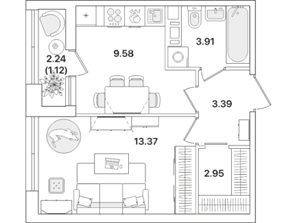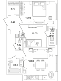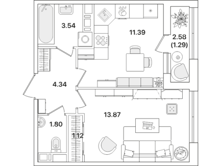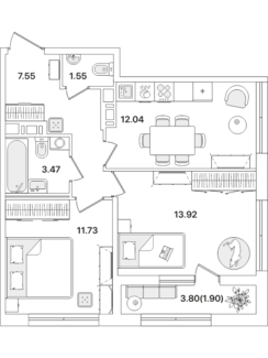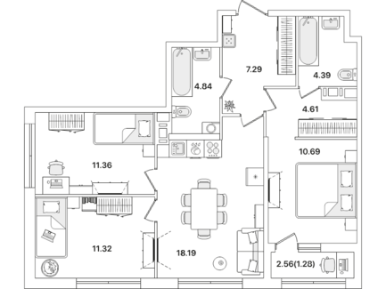 Представлен широкий выбор квартир – от студий до трехкомнатных, в том числе европланировки и варианты с мастер-спальнями. Квартиры на трех верхних этажах имеют увеличенную площадь остекления и более высокие потолки (до 3 метров).