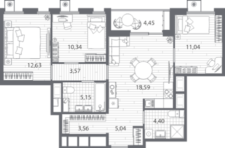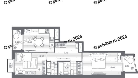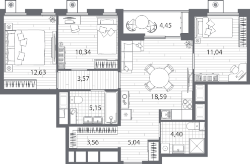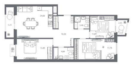 Площадь от 76.55 м2