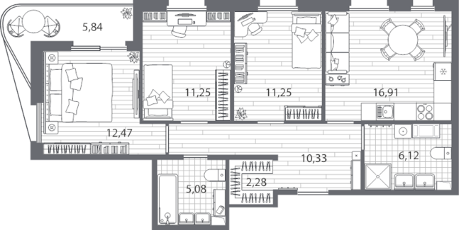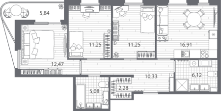 Площадь от 22.47 м2