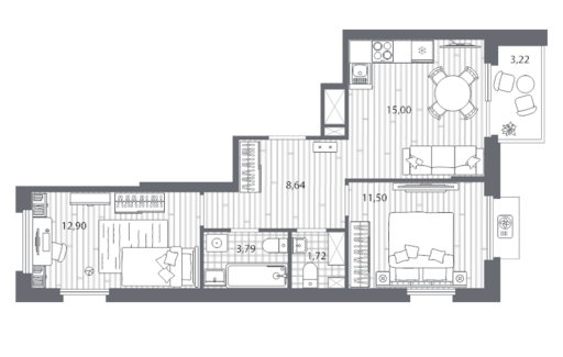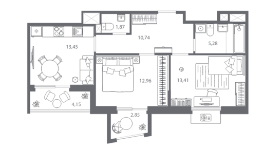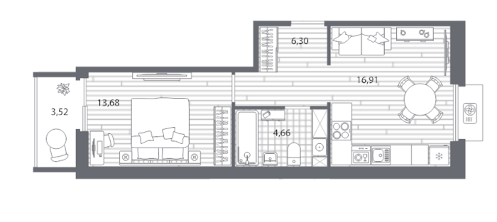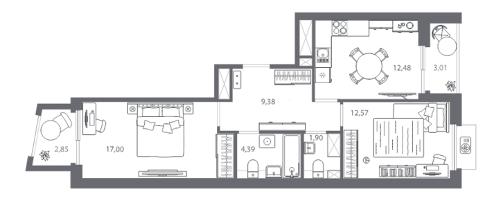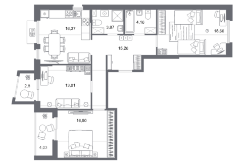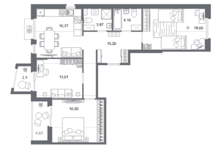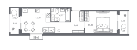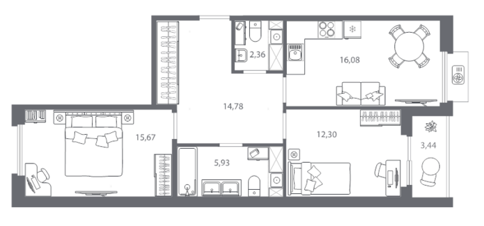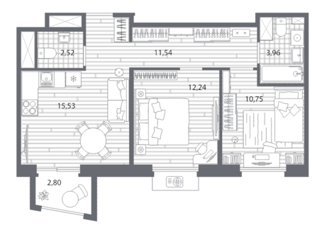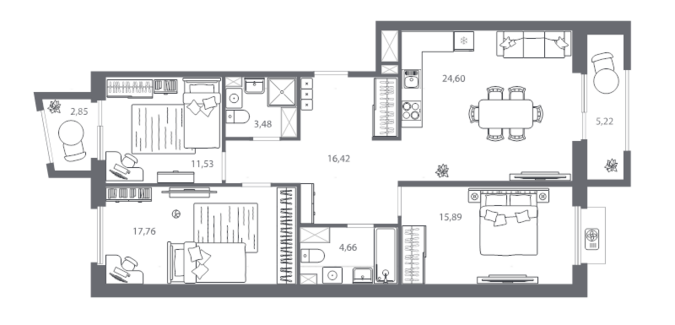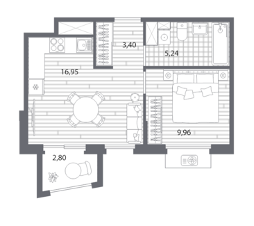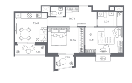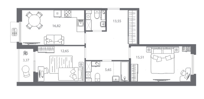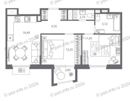 Площадь от 55.16 м2