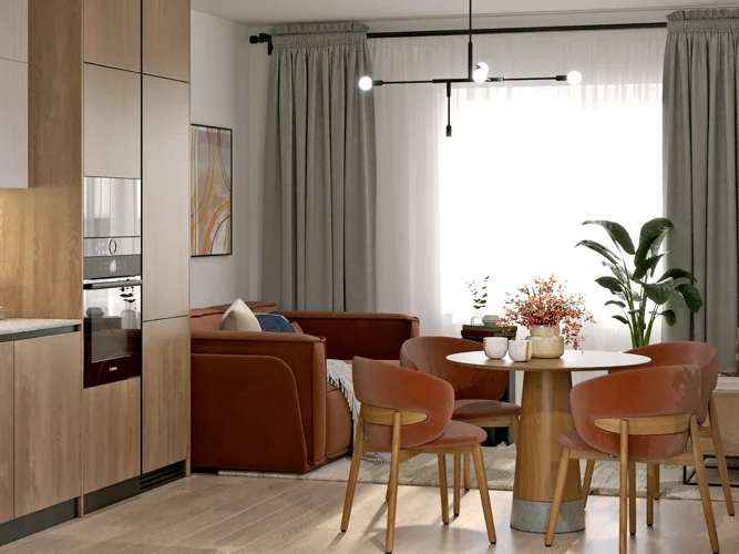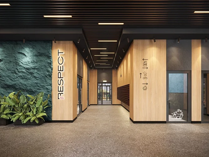 В ЖК Respect представлены два варианта чистовой отделки: светлая и тёмная. Мы используем исключительно современные и высокотехнологичные материалы с гармоничными оттенками для отделки вашей будущей квартиры. Потолки: натяжные или выравнивание с окраской. Окна: из ПВХ профиля с двухкамерным стеклопакетом (в соответствии с проектом), подоконная ПВХ доска. Оконные откосы: оштукатурены и окрашены или зашивка ГКЛ (гипсокартонным листом) с окраской. Остекление балконов и лоджий (при наличии остекления): алюминиевое однослойное. Полы комнат, прихожей, кухни, гардеробной: покрытие из