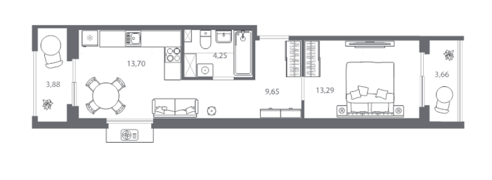 Площадь от 36.39 м2